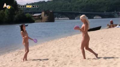 Deux filles russes nues s'amusent à la plage
