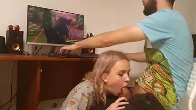 Elle suce et avale pendant qu'il joue à Fortnite !