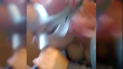 Femme masquée suce dans les chiottes