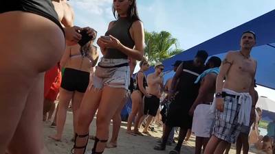 Un cul de salope bien rond bien exposé lors d'un festival de jour