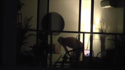 Une blonde en string filmée par la fenêtre de sa chambre d'hôtel