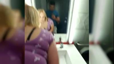 Une petite salope baisée dans des wc publics